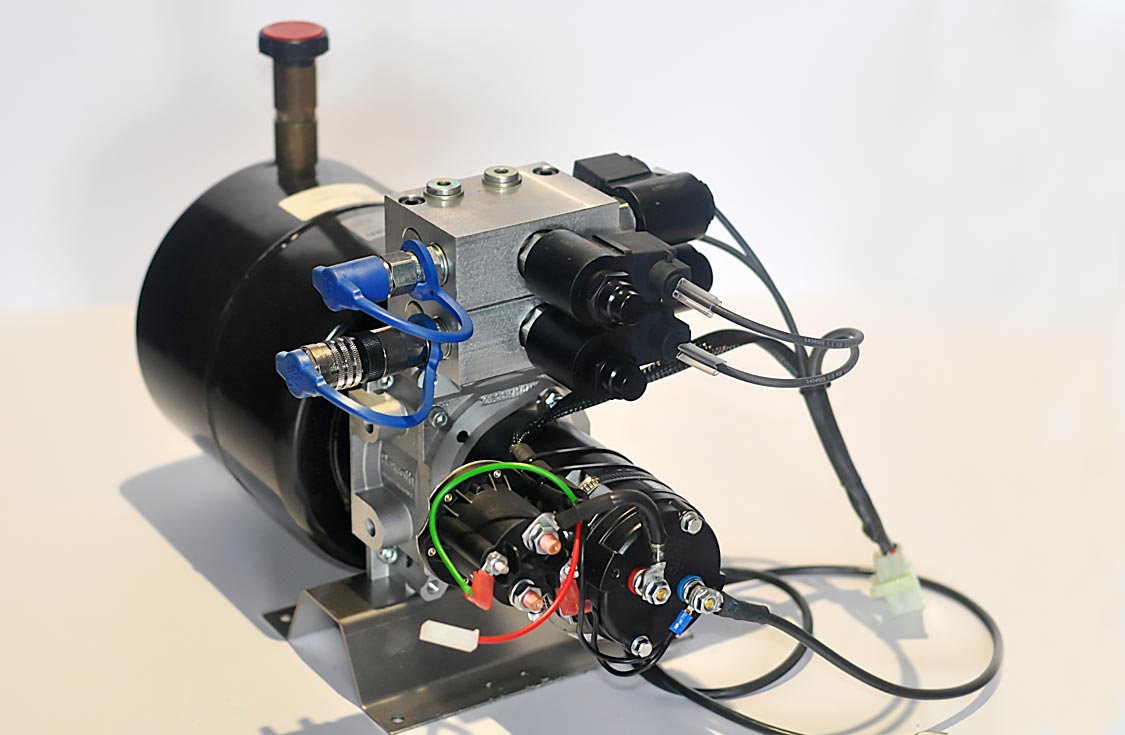 Complete pump and electric motor assembling with all wiring and hydraulic fittings ready to plug and play.